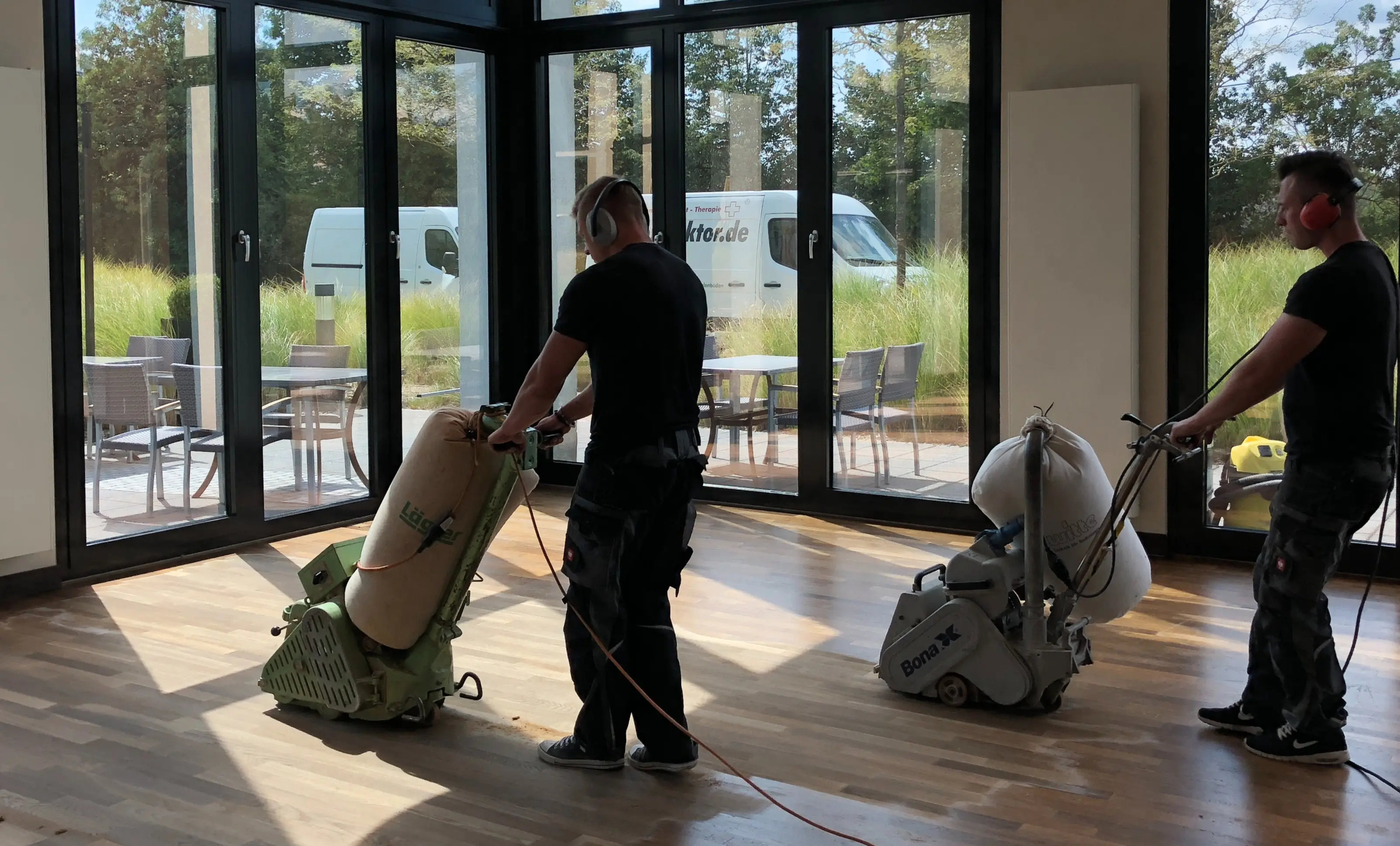 Für eine Fläche von 30 m² benötigen Sie in der Regel einen Arbeitstag. Während des Schleifvorgangs muss die Fläche begangen werden. Nach der Versiegelung ist das Parkett etwa 4 bis 5 Stunden nach dem letzten Auftrag wieder begehbar. Die genaue Zeit kann jedoch je nach Raumtemperatur und Luftfeuchtigkeit variieren.